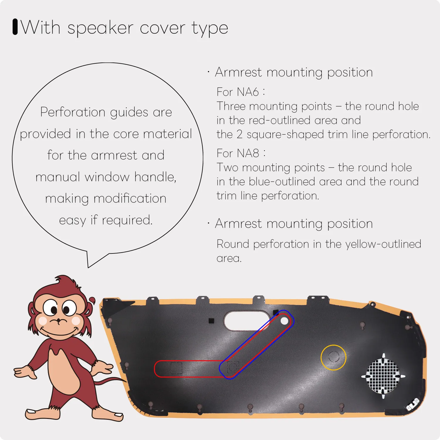 ▲Door Regulator set without speaker grille.Color: TAN / BLACK / RED