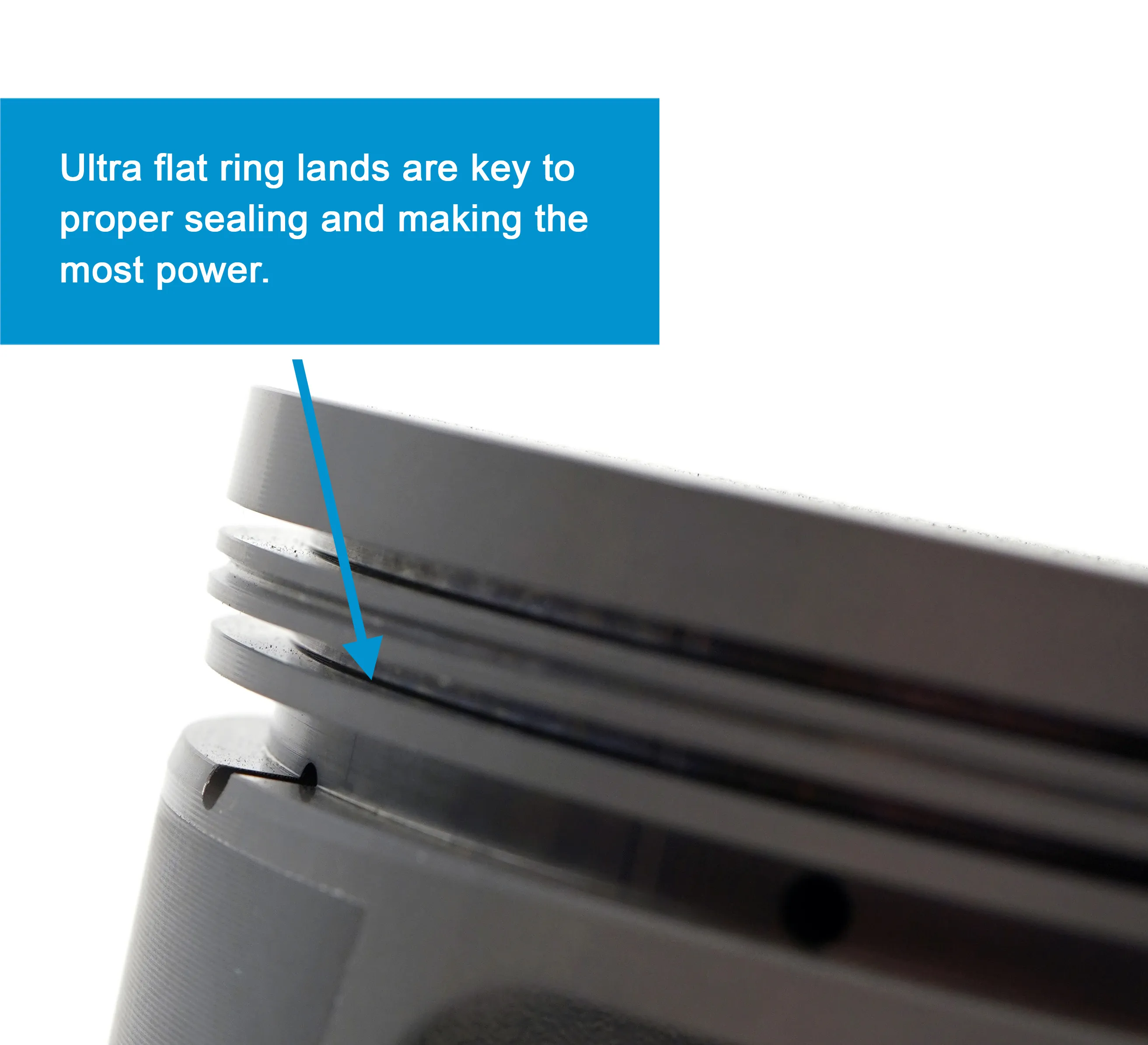 超フラットであるリング溝はパワーの鍵となります。シリンダー内壁に対して完全に垂直でない溝は適切なシールができず、オイルとブローバイガスのコントロールに加え、燃焼圧力の維持も困難になります。フラットなリング溝は、最高のシール性を実現し維持するために不可欠です。